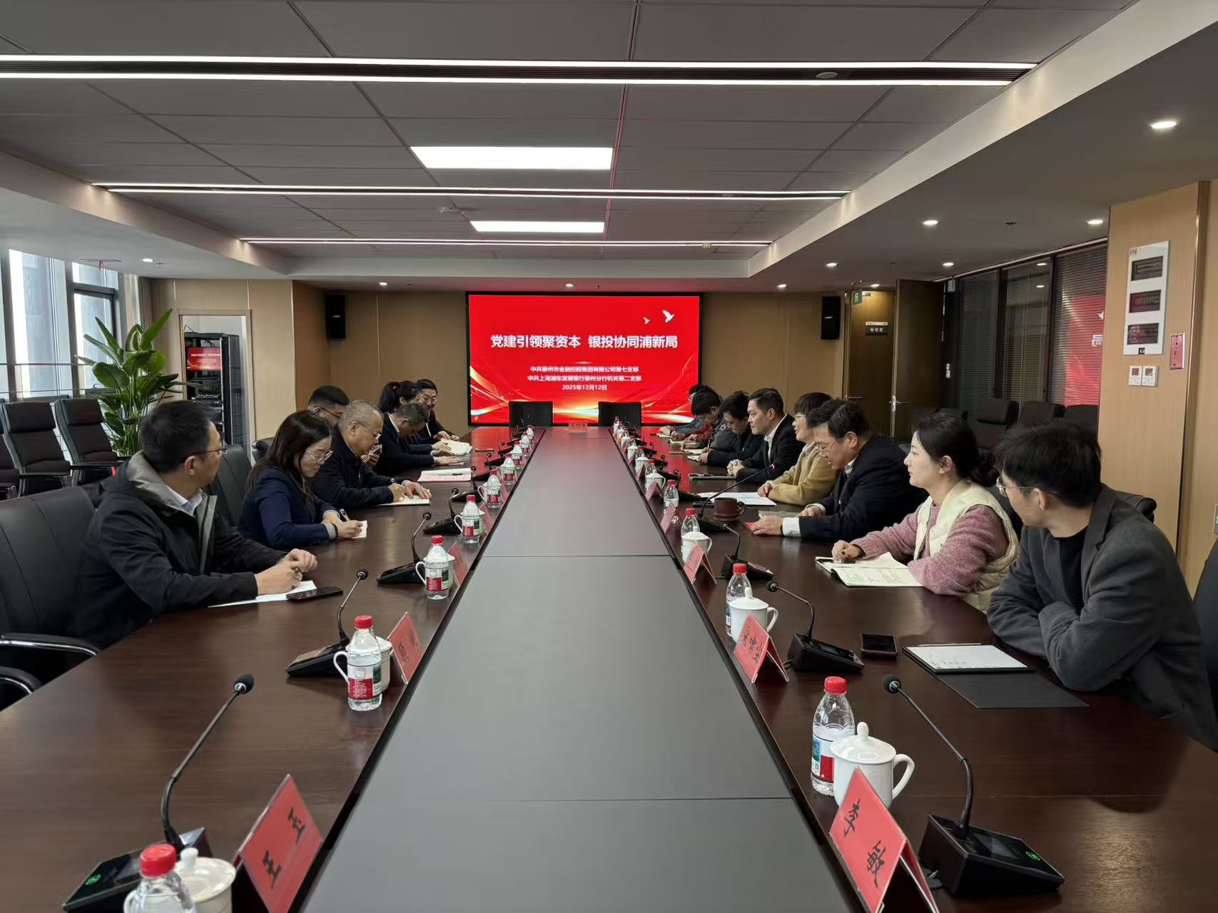 近日,泰州市金控集团第七党支部与浦发银行泰州分行机关第二党支部“党建引领聚资本 银投协同浦新局”党建共建活动隆重举行。 浦发银行泰州分行机关第二党支部与市金控集团第七党支部开展业务交流。浦发银行先介绍“投贷联动”服务体系及特色产品,市金控分享产业基金运作模式、投资方向与合作潜力,明晰双方资源互补点。双方以此次合作为起点,充分发挥党建引领作用与各自资源优势,积极探索组织联建、活动互联、工作互助等机制,深化资本与金融服务协同,全力打造“党建+资本+金融”新模式,共助泰州经济高质量发展。